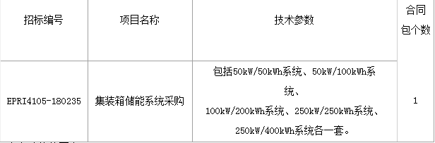 中國儲能網(wǎng)訊:近日,中國電力科學研究院有限公司發(fā)布集裝箱儲能系統(tǒng)采購招標公告,招標內(nèi)容包括50kW/50kWh系統(tǒng)、50kW/100kWh系統(tǒng)、100kW/200kWh系統(tǒng)、250kW/250kWh系統(tǒng)、250kW/400kWh系統(tǒng)各一套。詳見內(nèi)文: