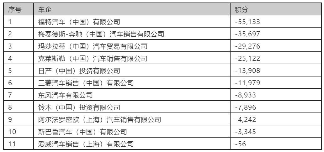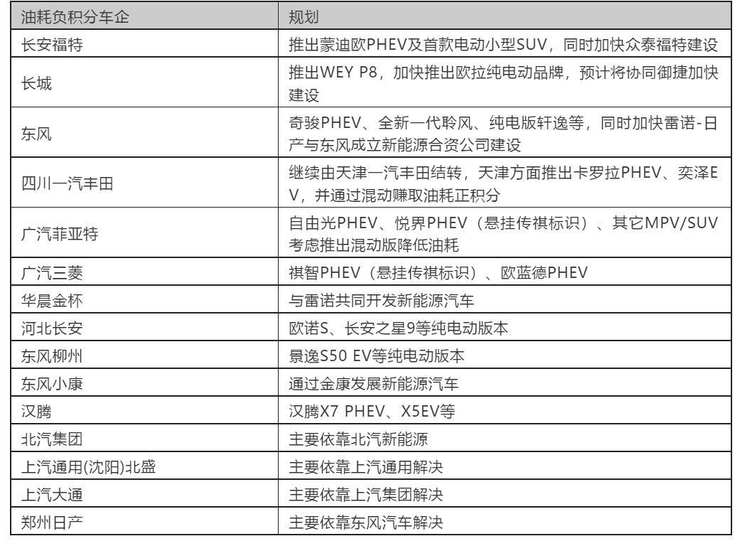 1、國(guó)產(chǎn)油耗負(fù)積分的車企
