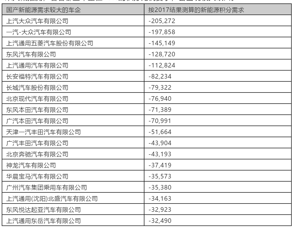 從上表中可以看出,上汽大眾的新能源積分需求最大,達(dá)到了20萬(wàn)分以上,這也與其傳統(tǒng)車體量太過(guò)龐大有關(guān),所以江淮大眾一定會(huì)攢足勁頭生產(chǎn)小型純電動(dòng)、降低交易成本;此外,一汽-大眾、上通五、東風(fēng)(主要是日產(chǎn))、長(zhǎng)安福特、長(zhǎng)城、北京現(xiàn)代、兩本、北京奔馳、上汽通用、華晨寶馬這些外資品牌也會(huì)比較焦慮,按照平均3分/輛,最少也需要產(chǎn)銷1萬(wàn)輛新能源汽車,多者還需要達(dá)到5-7萬(wàn)輛。
