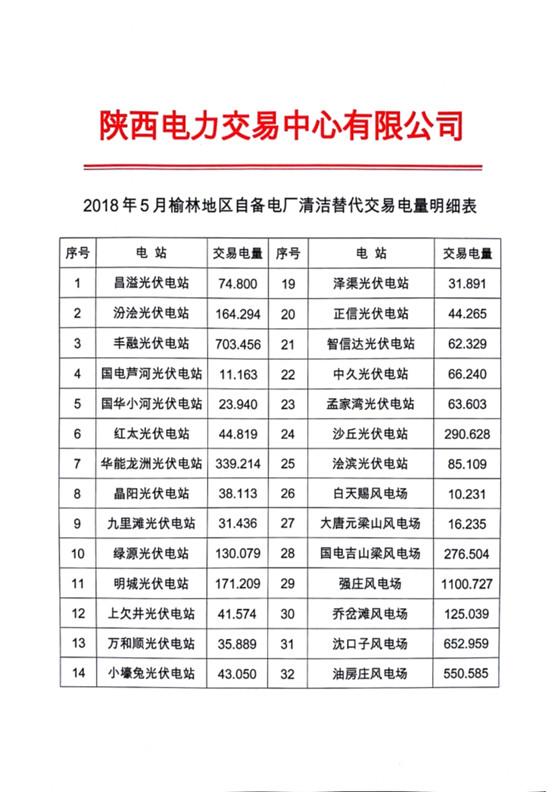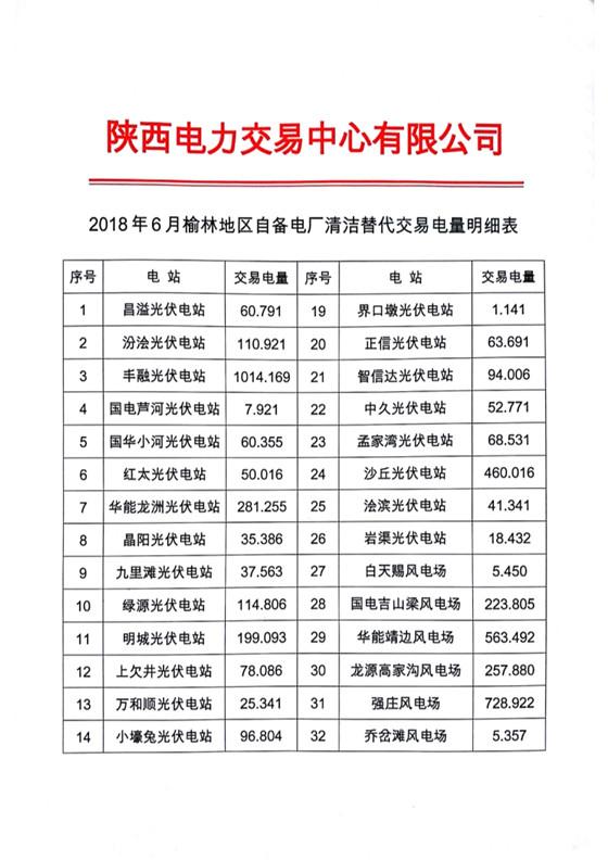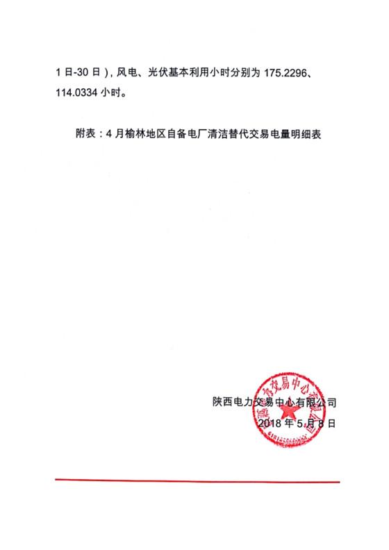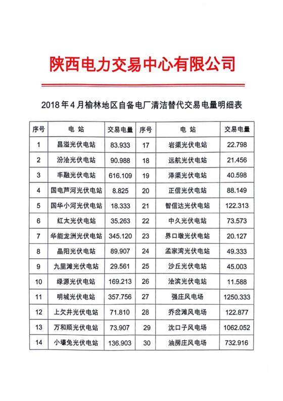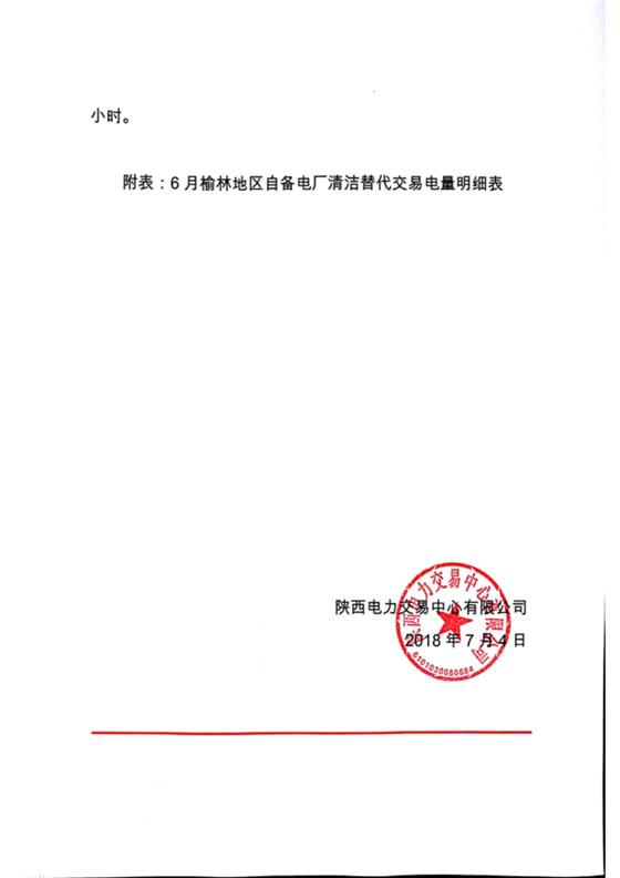 2018年4-6月榆林地區(qū)自備電廠清潔替代 交易執(zhí)行情況通報(bào)