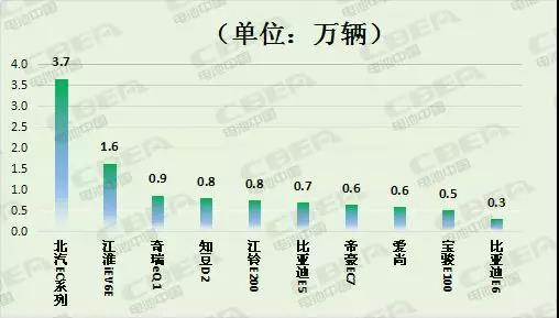 動(dòng)力電池應(yīng)用分會(huì)研究部統(tǒng)計(jì)了2018年1-5月純電動(dòng)乘用車銷量排名前十的車型分別為:北汽EC系列、江淮iEV6E、奇瑞eQ1、知豆D2、江鈴E200、比亞迪E5、帝豪EC7、愛尚、寶駿E100、比亞迪E6,銷量合計(jì)占純電動(dòng)乘用車總銷量的70%。其中包括7款A(yù)00級(jí)車型、2款A(yù)級(jí)車型和1款B級(jí)車型。