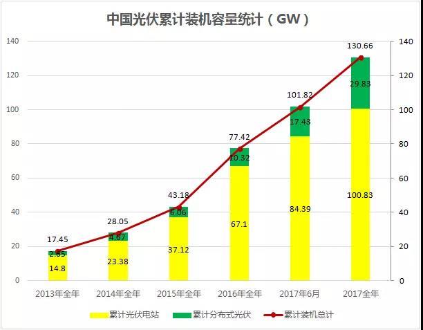 如下圖,我國(guó)光伏電站裝機(jī)規(guī)模從2013年不足20GW到2017年底的130GW,650%的增長(zhǎng)幅度僅用了4年的時(shí)間。作為一個(gè)需要國(guó)家補(bǔ)貼的行業(yè),在可再生能源基金池沒(méi)有增加的情況下,我國(guó)光伏產(chǎn)業(yè)的發(fā)展早已偏離了健康的軌道。