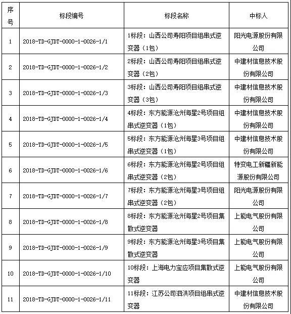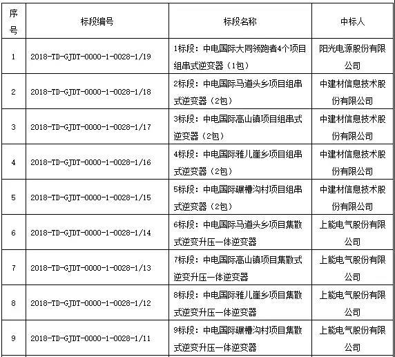7月7日,國(guó)家電投第一、二批光伏領(lǐng)跑者項(xiàng)目共計(jì)1.3GW并網(wǎng)逆變器設(shè)備的招標(biāo)結(jié)果皆已公布。在兩批招標(biāo)中,光伏逆變器分別為11個(gè)標(biāo)段和19個(gè)標(biāo)段,上能電氣包攬集散式9個(gè)標(biāo)段和集中式2個(gè)標(biāo)段,中標(biāo)容量460MW。此外,中建材共中標(biāo)14個(gè)標(biāo)段,陽(yáng)光電源與特變分別中標(biāo)4個(gè)和1個(gè)。根據(jù)公示內(nèi)容,此次集采主要是由這四家包攬。