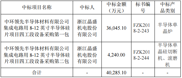 中國(guó)儲(chǔ)能網(wǎng)訊:7月12日,昌盛機(jī)電發(fā)布公告,公司于2018年7月11日收到中環(huán)領(lǐng)先半導(dǎo)體材料有限公司委托招標(biāo)代理機(jī)構(gòu)天津市泛亞工程機(jī)電設(shè)備咨詢有限公司發(fā)出的中標(biāo)通知書(shū)。
