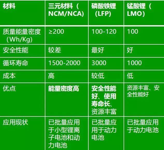 目前,市場上主流正極材料:磷酸鐵鋰(LFP)、錳酸鋰(LMO)和三元材料(NCM/NCA)。