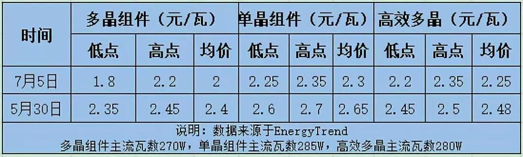 而2018年,最后一個(gè)“6·30”搶裝潮并未有效刺激價(jià)格攀升, EnergyTrend統(tǒng)計(jì),3~5月,常規(guī)組件單瓦價(jià)格由2.5~2.6元小降至2.4~2.6元。