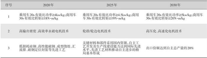 表7 驅(qū)動(dòng)電機(jī)技術(shù)路線圖
