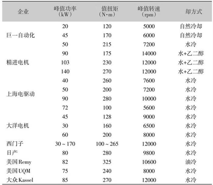 表2 國(guó)內(nèi)外驅(qū)動(dòng)電機(jī)企業(yè)的永磁同步電機(jī)參數(shù)比較
