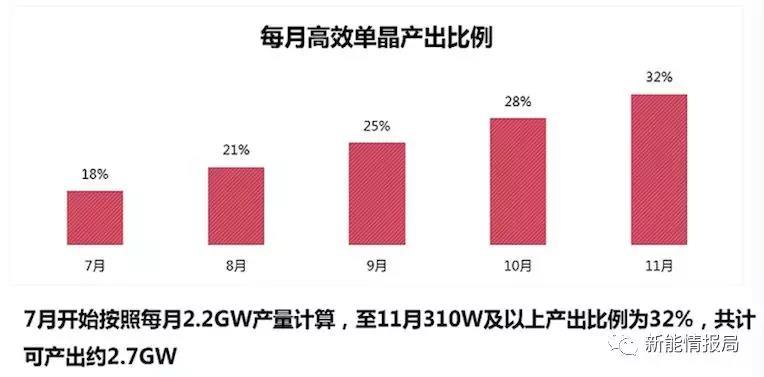 他說(shuō):“按照2.2GW單晶電池片產(chǎn)量加上每月8%產(chǎn)出比例計(jì)算,7月到11月310W及以上組件產(chǎn)出比例約32%,共計(jì)可產(chǎn)出約2.7GW,供應(yīng)可能非常緊張,現(xiàn)在行業(yè)高功率組件產(chǎn)品處于一個(gè)緊張的生產(chǎn)狀態(tài)?!?