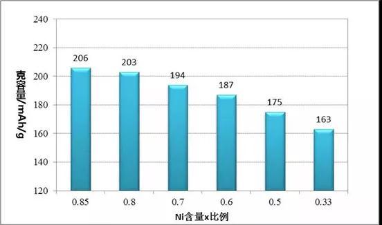 原來(lái)容量和鎳、鈷的總含量相關(guān),更確切的說(shuō),由于鈷的含量一般是變化比較少的通常是0.2或0.3,那么最直接相關(guān)的就是鎳的含量,由于鎳在三元材料里面的價(jià)態(tài)呈現(xiàn)+2和+3兩種價(jià)態(tài),當(dāng)有鋰離子脫出的時(shí)候過(guò)渡金屬鎳發(fā)生變價(jià)來(lái)達(dá)到荷電平衡。正是由于Ni的這種多價(jià)態(tài)表現(xiàn),它可以從+2變到+3,再由+3變到+4價(jià),所以,鎳含量越高,能夠脫出的鋰離子也就越多。