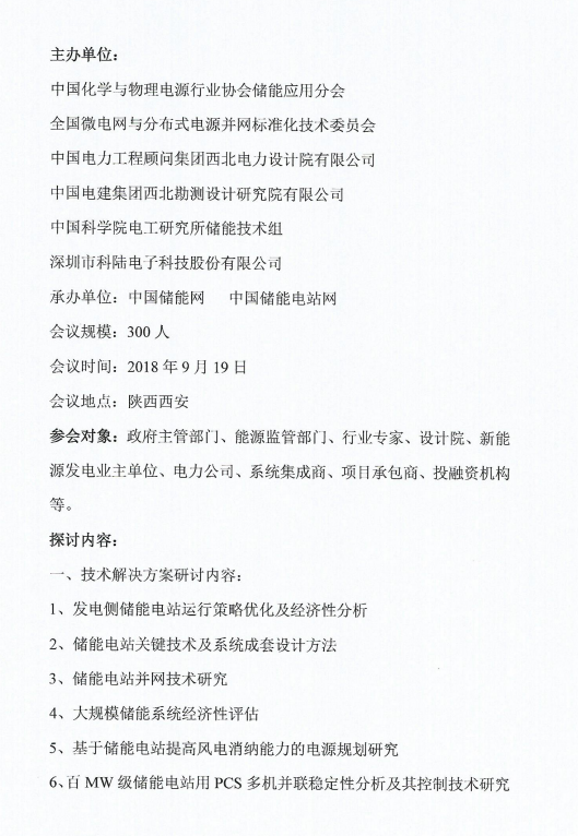 關(guān)于召開(kāi)首屆發(fā)電側(cè)儲(chǔ)能技術(shù)與應(yīng)用高層研討會(huì)的通知