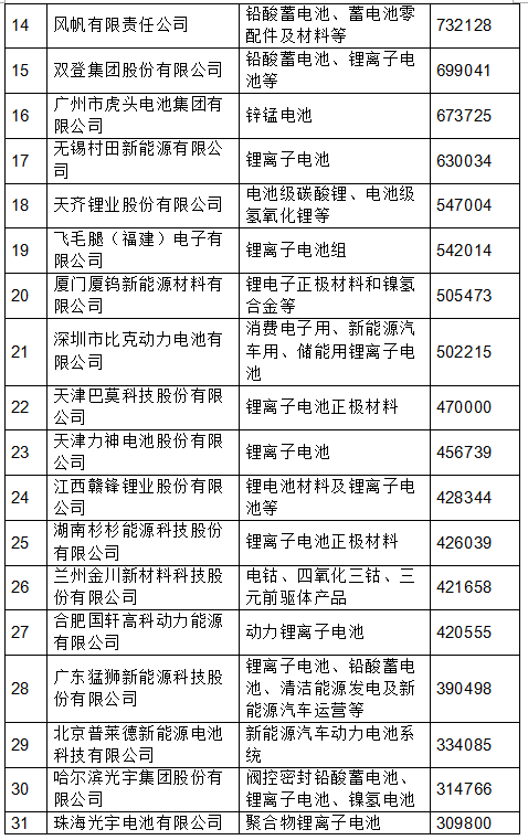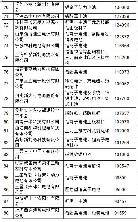 2017年度中國電池行業(yè)百強(qiáng)企業(yè)名單