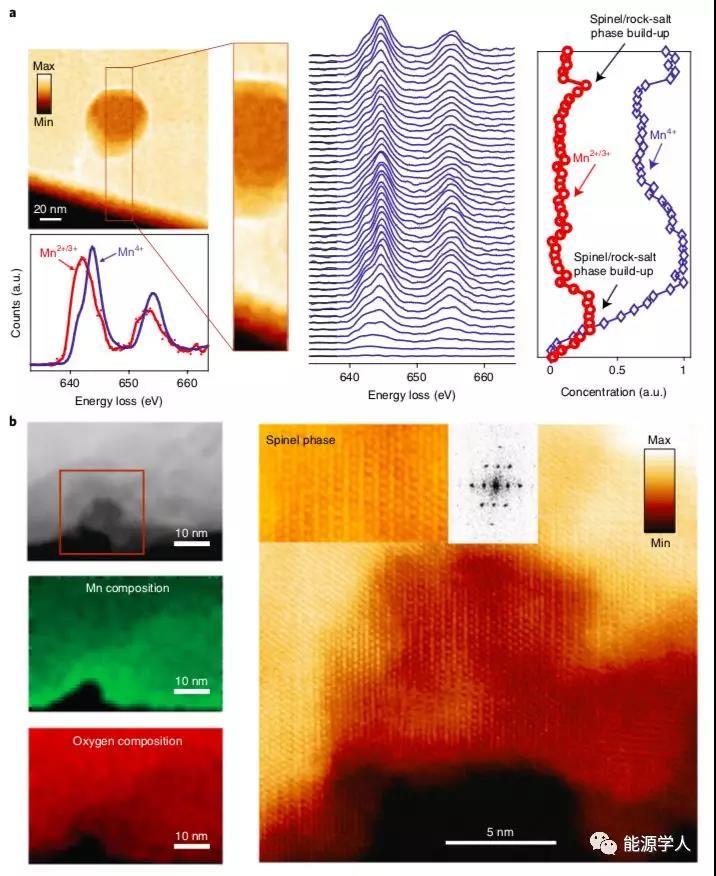雖然大量研究成果為LMR材料中與電壓衰減相關(guān)的晶體結(jié)構(gòu)變化提供了有價(jià)值的解釋。然而,這種晶體結(jié)構(gòu)變化與電壓衰減之間的根源:循環(huán)過程中材料中每種元素對(duì)容量衰減的影響,結(jié)構(gòu)如何重組、何時(shí)相變,如何通過材料顆粒進(jìn)行相變傳播尚未進(jìn)行徹底研究。