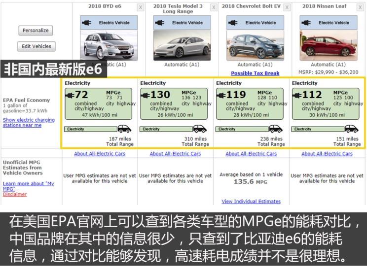 以電耗為例,美國EPA組織一直以能耗作為一輛汽車的重要指標,并設(shè)定了“MPG”值作為考量標準,而在新能源汽車“MPGe”的計算上,“e”代表的是每加侖汽油能行駛的英里數(shù)。將“汽油”轉(zhuǎn)換為了“電”,換算后就變成每“33.7度”電可以行駛多少英里。