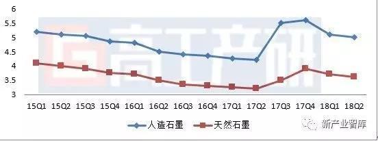 2015Q1-2018Q2中國常規(guī)負極材料均價走勢(萬元/噸)