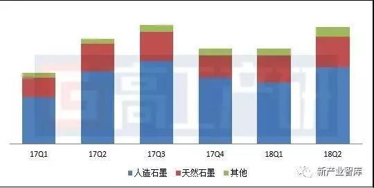 2017Q1-2018Q2年中國負極材料出貨量(噸)