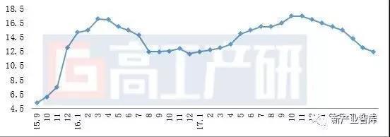 2015年9月-2018年6月電池級碳酸鋰價格走勢(萬元/噸)