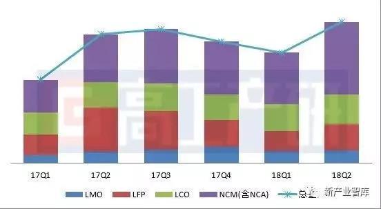 2017Q1-2018Q2中國正極材料出貨量分析(噸)