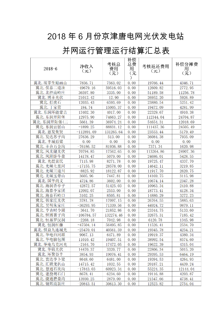 中國(guó)儲(chǔ)能網(wǎng)訊:日前,華北能監(jiān)局發(fā)布了2018年6月份京津唐電網(wǎng)111個(gè)光伏發(fā)電站并網(wǎng)運(yùn)行管理運(yùn)行結(jié)算匯總情況。