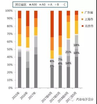 中國純電動汽車市場是在快速變化中的,依靠之前的補貼的優(yōu)勢,以北汽為例還是在A00發(fā)力的情況下去擴大市場占有率,如下圖所示,這種情況即使在2018年上半年還是存在的。隨著補貼政策的調(diào)整,在考核車輛先進性以能耗和能量密度為抓手,以車輛是否滿足未來的需求,車企其實不能建立在補貼上求生存,這勢必需要在A0、A級甚至是B級這樣的純電動平臺上做出嘗試建立根據(jù)地,尋求與爆款的燃油車競爭的本錢。因此即使是北汽新能源的年銷10萬的基數(shù)的企業(yè),還得不斷地尋找產(chǎn)品優(yōu)化。在EU系列,從EU200、EU260、EU300、EU400到EU5,不斷的提高電池系統(tǒng)的能量密度,拉高續(xù)航里程并對驅(qū)動系統(tǒng)進行優(yōu)化,對產(chǎn)品的成本控制進行極致的壓縮,這是一個痛苦的過程。在EX260、EX350/360再到下一步的車型,也是尋求真正消費者的認同。