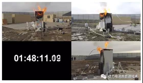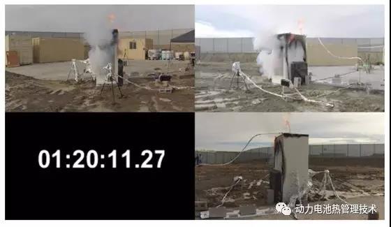 不管是內(nèi)部觸發(fā)還是外部觸發(fā),實(shí)驗(yàn)過程沒有外部直接去中斷或干預(yù)燃燒,這次實(shí)驗(yàn)為公共消防提供了一些數(shù)據(jù),如外部加熱約1h會(huì)達(dá)到可維持的熱失控條件,電池?zé)崾Э乇Wo(hù),火災(zāi)反應(yīng)及處理機(jī)制等,當(dāng)然還有一些燃燒氣體成分分析等等。
