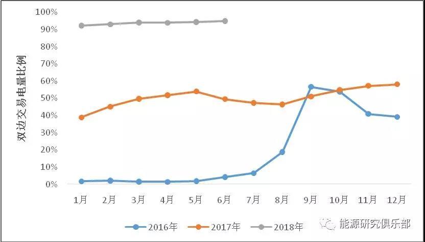 經(jīng)過幾年的市場培育和有效激勵,云南電力市場參與者的市場意識顯著提升,市場活躍程度不斷增強,從2014年政府主導的大用戶直購電到2018年市場參與者自發(fā)、自愿、自主地進行交易,由“要我參與”轉(zhuǎn)變?yōu)椤拔乙獏⑴c”,由“不參與,亂參與”轉(zhuǎn)變?yōu)椤霸竻⑴c,會參與”,雙邊交易就是上述轉(zhuǎn)變的一個重要縮影。雙邊交易由買賣雙方自主協(xié)商電量、電價,且不受集中市場的限價約束,是體現(xiàn)市場活躍程度和參與者市場意識、博弈能力最主要的交易品種。云南電力市場中雙邊交易電量占全部市場化交易電量的比例由2016年的21.5%穩(wěn)步增長至2018年1~5月的94.3%,市場主體之間還自主形成強強聯(lián)合、多能互保等一系列互利共贏的合作方式,市場參與者的活力和創(chuàng)造力被有效激發(fā)。