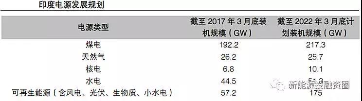 根據(jù)印度中央電力管理局2018年發(fā)布的《國家電力規(guī)劃(Volume1,Generation)》,印度將加快發(fā)展可再生能源,未來五年主要的新增電源為可再生能源,計劃到2022年將可再生能源裝機提升至175GW(其中太陽能100GW,風電60GW)。