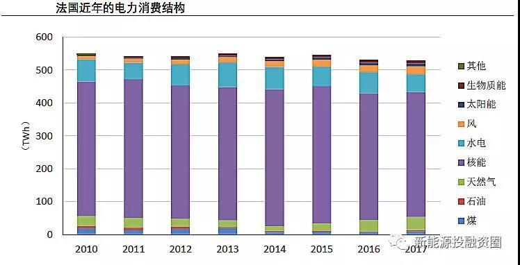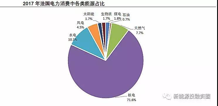 法國能源結構中,核電占據(jù)主導地位,超過70%的發(fā)電量來自于核電。近年來,法國的能源政策傾向于削減核電份額、發(fā)展可再生能源。2015年,法國政府出臺《綠色增長能源轉型法案》,根據(jù)該法案,到2025年,法國將核能發(fā)電量占電力生產的比例從75%削減到50%;到2030年,可再生能源占最終能源消費量的比例從2012年的13.7%提高到32%。