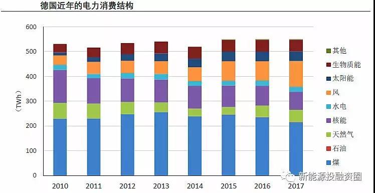在棄核的背景下,德國可再生能源快速發(fā)展,風電發(fā)電量占比從2010年的7.1%提升至2017年的18.8%,光伏發(fā)電量占比從2.2%提升至7.0%。