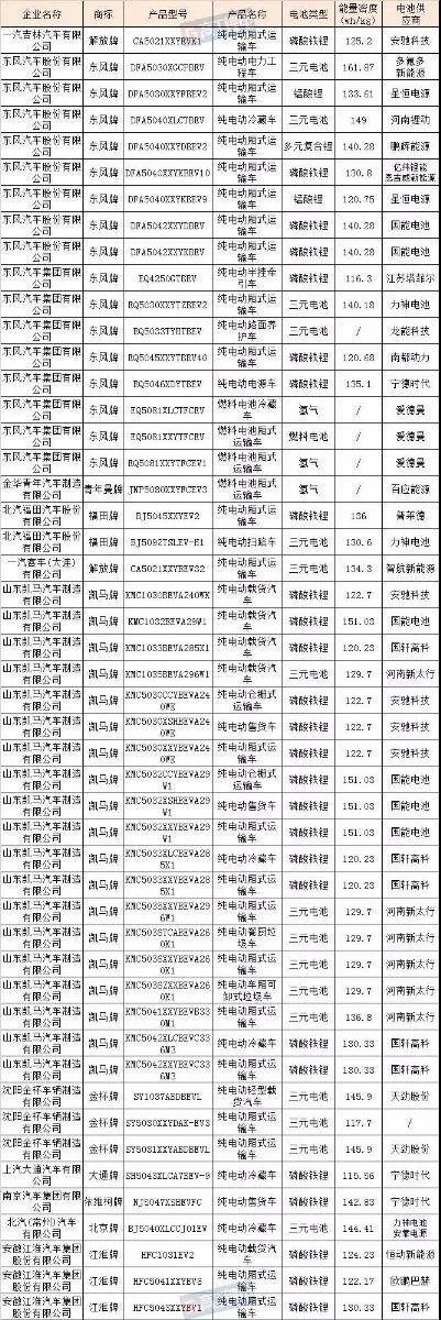從系統(tǒng)能量密度來看,本批目錄中的車型的系統(tǒng)能量密度全部超過115wh/kg,普遍達(dá)到120wh/kg,其中有38款車型系統(tǒng)能量密度達(dá)到140wh/kg以上。其中,系統(tǒng)能量密度最高的車型來自東風(fēng)汽車股份有限公司旗下的一款純電動電力工程車,由多氟多新能源提供。