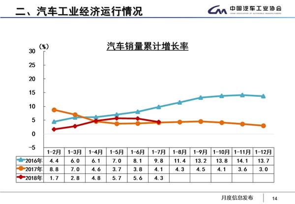 今年1-7月,汽車產(chǎn)銷分別為1610.03萬輛和1595.47萬輛,同比增長3.52%和4.33%。與上年同期相比,產(chǎn)量增速回落1.13個百分點(diǎn),銷量增速提升0.23個百分點(diǎn)。其中乘用車產(chǎn)銷1357.91萬輛和1336.45萬輛,同比增長2.55%和3.35%;商用車產(chǎn)銷252.11萬輛和259.02萬輛,同比增長9.04%和9.67%,產(chǎn)銷增速比上年明顯回落。對此,許海東表示,從整體上看,我國的汽車產(chǎn)銷數(shù)據(jù)是“穩(wěn)中有變”。此外,“由于我國上半年的產(chǎn)銷分別增長了4.2%和5.6%,即使下半年面臨增速放緩的情況,今年全年應(yīng)該可以維持產(chǎn)銷3%的增速預(yù)期,不會調(diào)整。”他如是說。