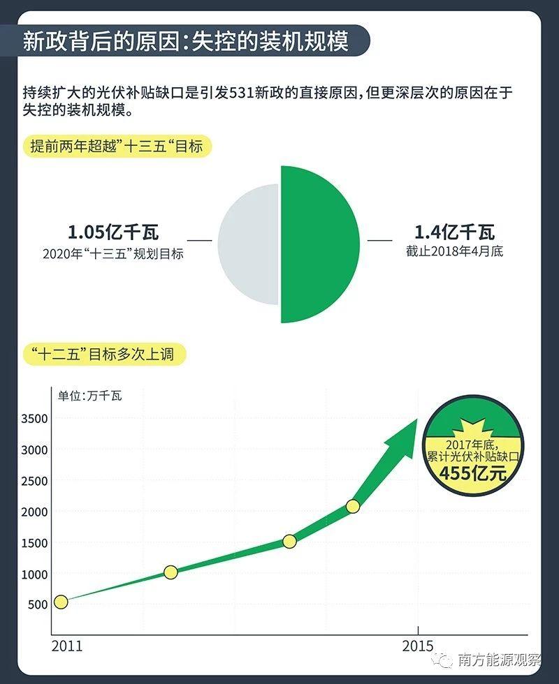 光伏規(guī)模失控帶來巨大的補(bǔ)貼缺口,已經(jīng)成為制約光伏發(fā)展的突出問題。國家能源局公布的數(shù)據(jù)顯示,截至2017年底,累計(jì)可再生能源發(fā)電補(bǔ)貼缺口總計(jì)達(dá)到1127億元,其中光伏補(bǔ)貼缺口455億元。新增10GW分布式光伏,則意味著每年需要增加補(bǔ)貼40億元,補(bǔ)貼20年需要800億元。