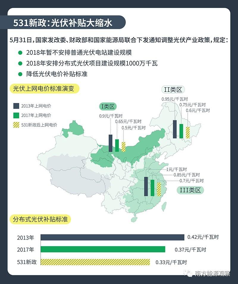 這是中國光伏“531新政”后的一個(gè)行業(yè)縮影?!?31新政”是國家發(fā)改委、財(cái)政部、國家能源局聯(lián)合下發(fā)的一份關(guān)于控制光伏發(fā)電新建規(guī)模和加快補(bǔ)貼退坡的通知,因從2018年5月31日起實(shí)施而得名,也因其推出的突然性,而對(duì)光伏產(chǎn)業(yè)產(chǎn)生巨大震動(dòng)。