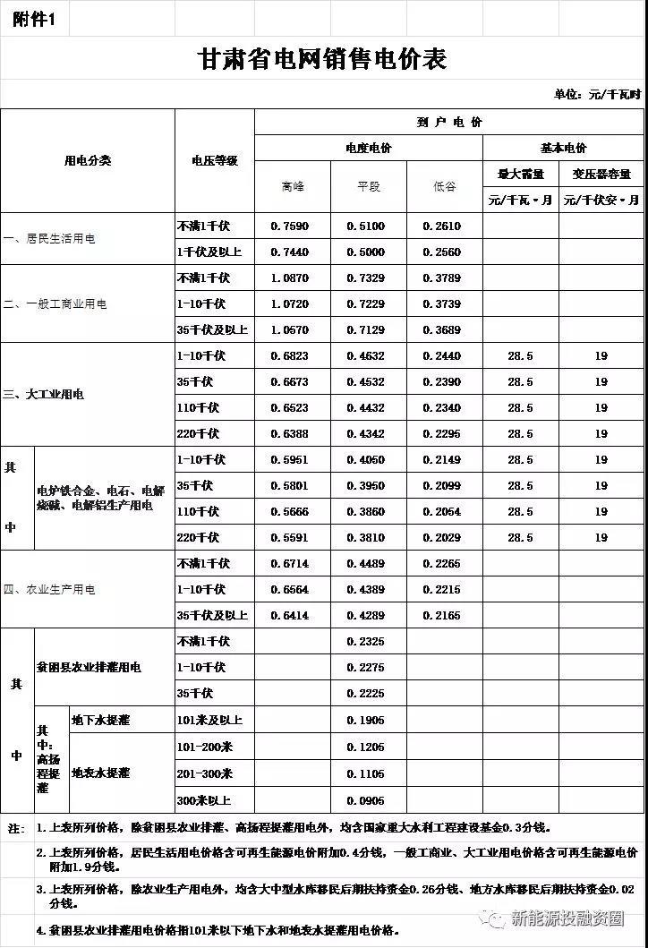 (1)甘肅電價(jià)
