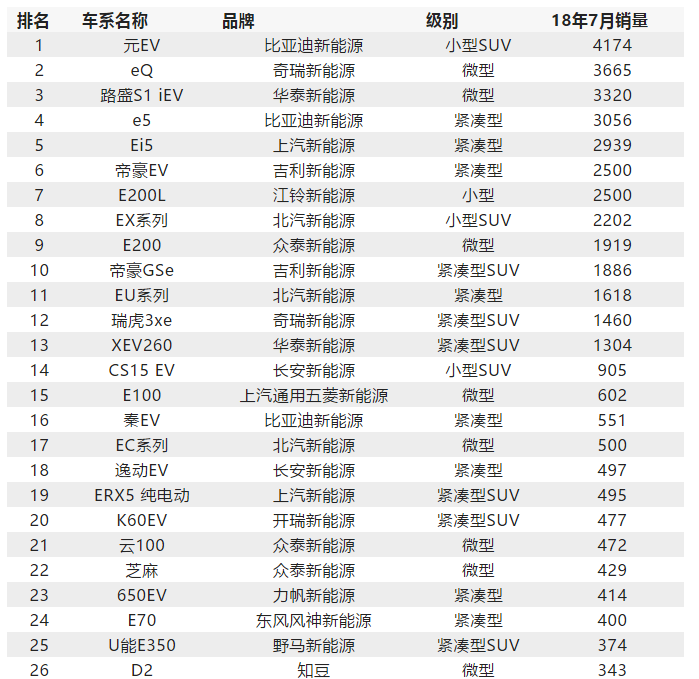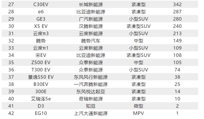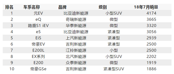 比亞迪元EV成為18年首個到達(dá)月電動車銷量榜第一的小型SUV,銷量4174輛。