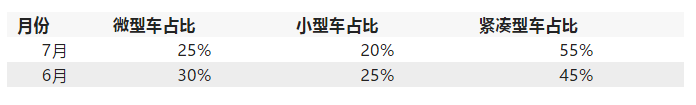 從下面的表格中也不難看出微型和小型車的比例在不斷減少,緊湊型車在逐步增加。(此數(shù)據(jù)從6、7月銷量前20中統(tǒng)計而來)