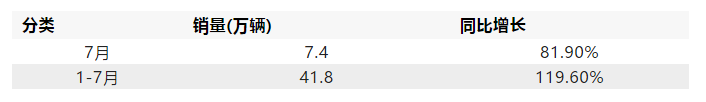 7月新能源廣義乘用車批發(fā)銷量7.4萬臺,同比增長81.9%,其中插電混動的占比達(dá)到32%,較17年7月占比提升8個百分點(diǎn),結(jié)構(gòu)改善表現(xiàn)較好,尤其是新勢力造車企業(yè)嶄露鋒芒,實(shí)現(xiàn)新能源車的高質(zhì)量增長。