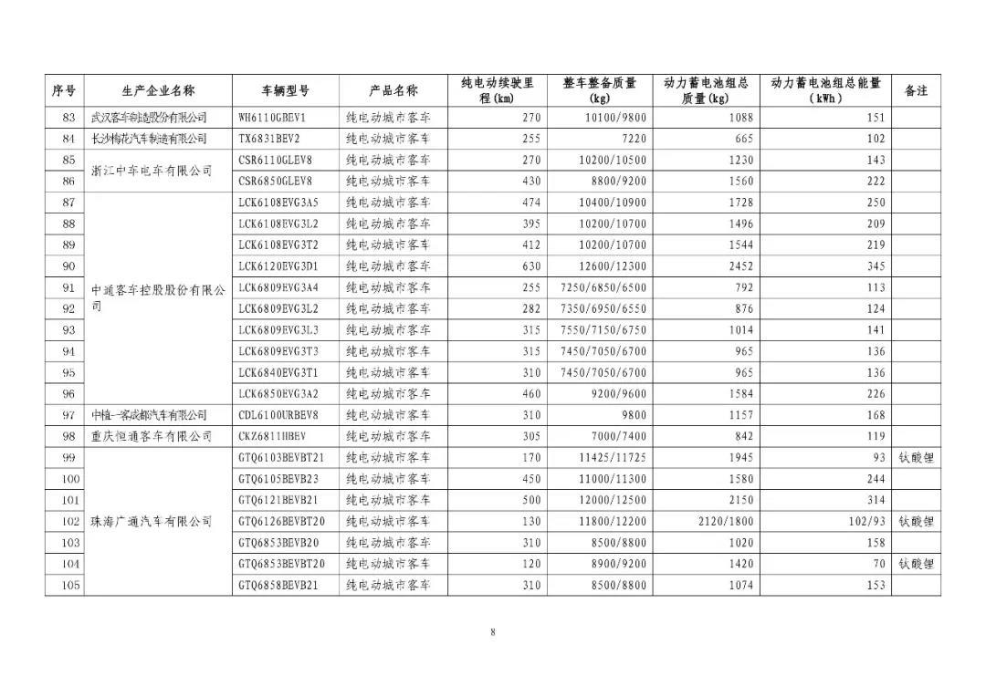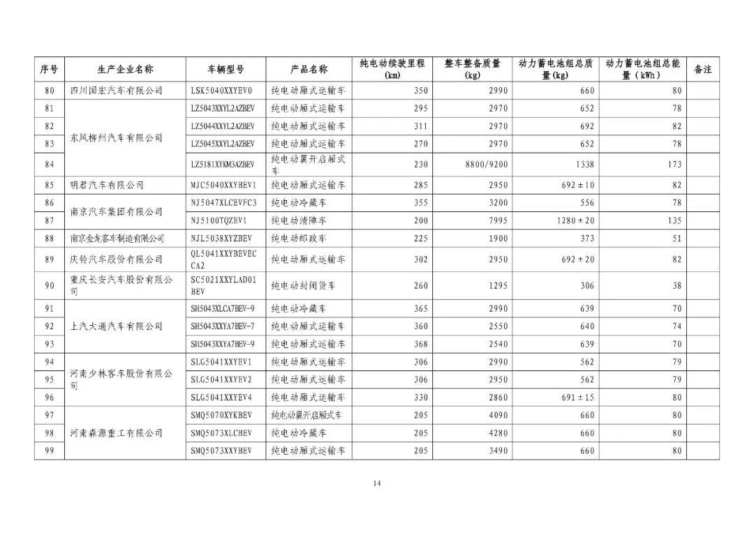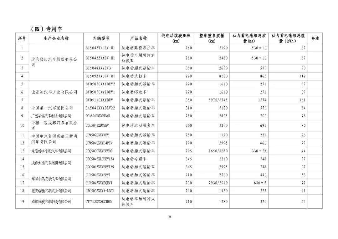 中國(guó)儲(chǔ)能網(wǎng)訊:近日,工信部發(fā)布了《免征車(chē)輛購(gòu)置稅的新能源汽車(chē)車(chē)型目錄》(第十九批)公告,涉及純電動(dòng)乘用車(chē)61款,純電動(dòng)客車(chē)105款,純電動(dòng)貨車(chē)6款,純電動(dòng)專(zhuān)用車(chē)143款占到總車(chē)型量的獨(dú)占42.4%,插電式混合動(dòng)力乘用車(chē)9款,插電式混合動(dòng)力客車(chē)15款,插電式混合動(dòng)力專(zhuān)用車(chē)1款,燃料電車(chē)客車(chē)2款,燃料電池專(zhuān)用車(chē)1款。