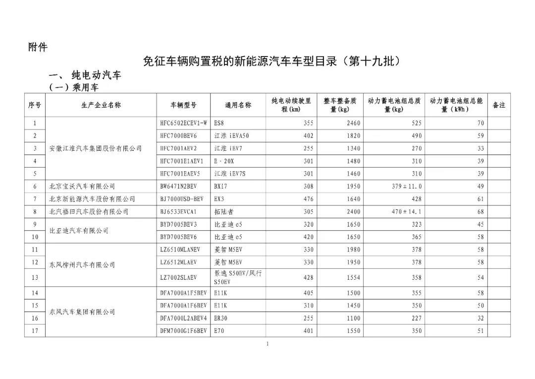 以下為免征車(chē)輛購(gòu)置稅的新能源汽車(chē)車(chē)型目錄: