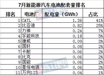 高工產(chǎn)研鋰電研究所(GGII)統(tǒng)計(jì)數(shù)據(jù)顯示,2018年7月,寧德時(shí)代與比亞迪兩家頭部企業(yè)依然牢牢占據(jù)新能源汽車電池配套量前兩位,合計(jì)配電量2.18GWh,占總比66%。二三線競(jìng)爭(zhēng)格局由于尚未形成,排位爭(zhēng)奪仍然激烈,星恒電源以月配電量0.06GWh排名第十。