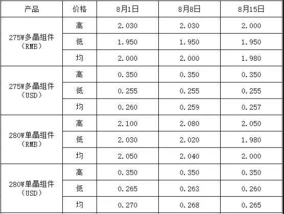 目前,各大組件企業(yè)的長(zhǎng)期庫(kù)存產(chǎn)品基本售空,低效組件供給減少,一線企業(yè)出貨主要為多晶270-275W和單晶285-290W,市場(chǎng)價(jià)格平穩(wěn)下降。