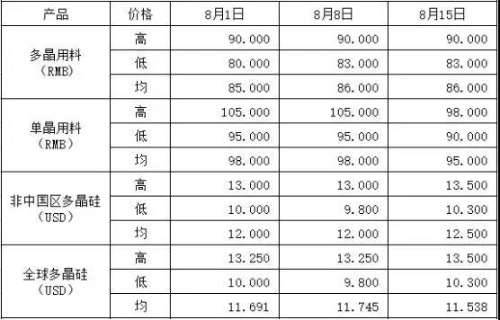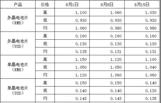 從統(tǒng)計(jì)信息來(lái)看,多晶用料價(jià)格基本穩(wěn)定,單晶開(kāi)始出現(xiàn)小幅下跌??紤]到單晶用料有相當(dāng)一部分來(lái)自海外,而近期人民幣對(duì)美元有所貶值,預(yù)計(jì)硅料采購(gòu)成本(人民幣價(jià)格)會(huì)上漲。