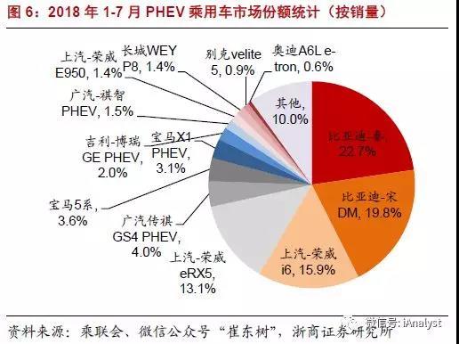 另據(jù)乘聯(lián)會的統(tǒng)計(jì)數(shù)據(jù),1-7月,比亞迪-秦、比亞迪-宋DM、榮威i6、榮威eRX5分別售出2.70萬輛、2.36萬輛、1.90萬輛、1.56萬輛,我們據(jù)此測算,這4款車型合計(jì)銷量為8.52萬輛,占PHEV乘用車總銷量7成以上,如圖6所示。