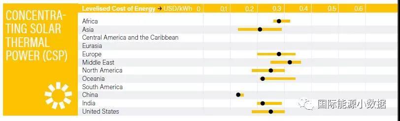 由上表可見,光熱發(fā)電全生命周期的平準(zhǔn)成本在中國最低,其次是印度;中東平準(zhǔn)成本最高,其次是歐洲、非洲、北美地區(qū)。