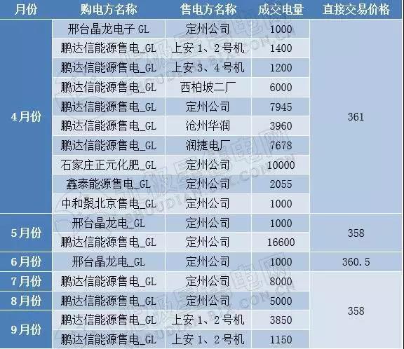 河北南部電網(wǎng)2018年第二階段(7-12月)年度雙邊電力直接交易結(jié)果