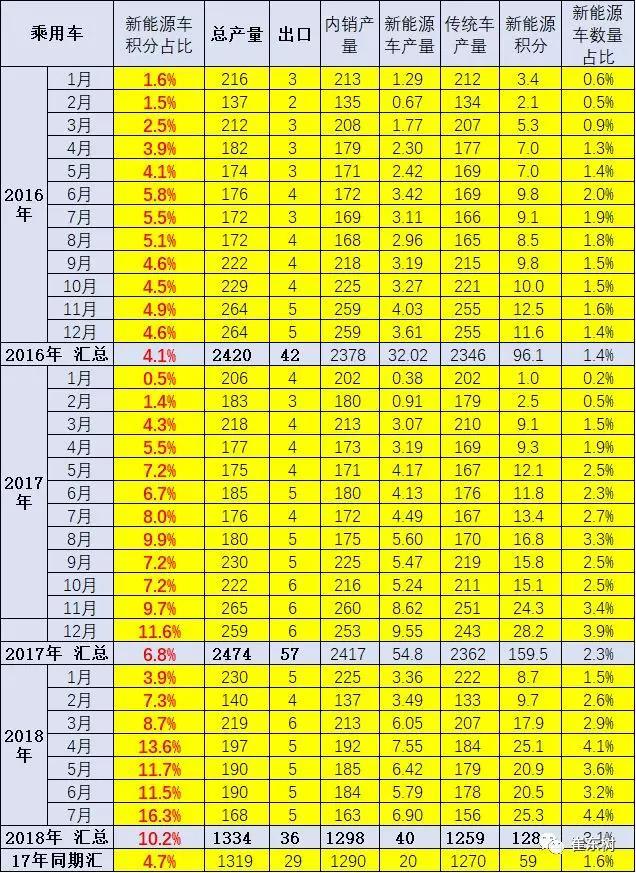 18年1-7月新能源乘用車產(chǎn)量40萬臺,較2017年增長95%,而新能源積分達到128萬分,較17年同期增長116%。