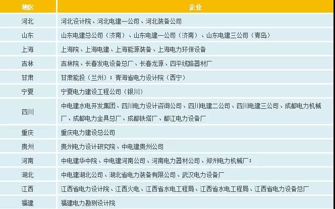 ?四家輔業(yè)集團:中國電力工程顧問集團(下屬六大區(qū)域設計院)、中國水電工程顧問有限公司、中國水利水電建設集團公司、中國葛洲壩集團公司。