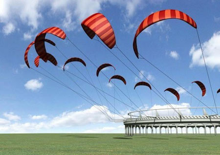 現(xiàn)代商業(yè)風(fēng)車(chē)的葉片聳立在距離地面大約80米的高空,風(fēng)速大約是每秒5米。然而在800米的高空,風(fēng)速上升到每秒7米,因此能產(chǎn)生更大能量。事實(shí)上,要制造一個(gè)可以利用800米高空的風(fēng)能渦輪機(jī)根本就不可能,但是風(fēng)箏風(fēng)力發(fā)電機(jī)很容易就能達(dá)到這個(gè)高度。KiteGen采用了多個(gè)降落傘形、大翼展的高空風(fēng)箏,宣稱(chēng)能夠產(chǎn)生十億瓦特的綠色低成本電能。