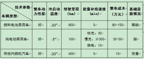 表2 純電動(dòng)、燃料電池及傳統(tǒng)內(nèi)燃機(jī)對(duì)比分析表