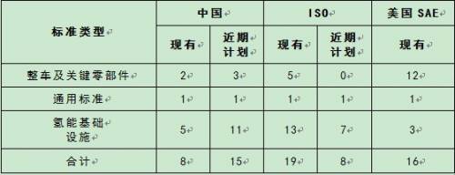 經(jīng)過(guò)聯(lián)系兩個(gè)五年電動(dòng)汽車(chē)科技計(jì)劃攻關(guān),我國(guó)累計(jì)頒布了56條國(guó)家或行業(yè)電動(dòng)汽車(chē)技術(shù)標(biāo)準(zhǔn),初步建立了電動(dòng)汽車(chē)技術(shù)標(biāo)準(zhǔn)體系,基本能夠滿(mǎn)足當(dāng)前電動(dòng)汽車(chē)科學(xué)研究、產(chǎn)品試驗(yàn)、產(chǎn)業(yè)化生產(chǎn)指導(dǎo)、產(chǎn)品市場(chǎng)準(zhǔn)入和商業(yè)化示范推廣應(yīng)用需要,被公認(rèn)為處于世界前列。但分析已頒布技術(shù)標(biāo)準(zhǔn)發(fā)現(xiàn),我國(guó)燃料電池汽車(chē)相關(guān)技術(shù)標(biāo)準(zhǔn)只有8項(xiàng),而同期ISO有19項(xiàng),美國(guó)SAE有16項(xiàng),中國(guó)燃料電池汽車(chē)技術(shù)標(biāo)準(zhǔn)嚴(yán)重缺乏,如表5。與此同時(shí),在現(xiàn)有8項(xiàng)燃料電池汽車(chē)技術(shù)標(biāo)準(zhǔn)中,其中5項(xiàng)主要圍繞氫能基礎(chǔ)設(shè)施,而燃料電池汽車(chē)整車(chē)和零部件分別只有1項(xiàng),燃料電池汽車(chē)整車(chē)及關(guān)鍵零部件技術(shù)標(biāo)準(zhǔn)嚴(yán)重缺乏,因此在“十二五”期間,國(guó)家應(yīng)該加大投入,進(jìn)行燃料電池汽車(chē)(含整車(chē)和關(guān)鍵零部件的設(shè)計(jì)、生產(chǎn)和試驗(yàn)等)技術(shù)標(biāo)準(zhǔn)研究,建立燃料電池汽車(chē)技術(shù)標(biāo)準(zhǔn)體系。